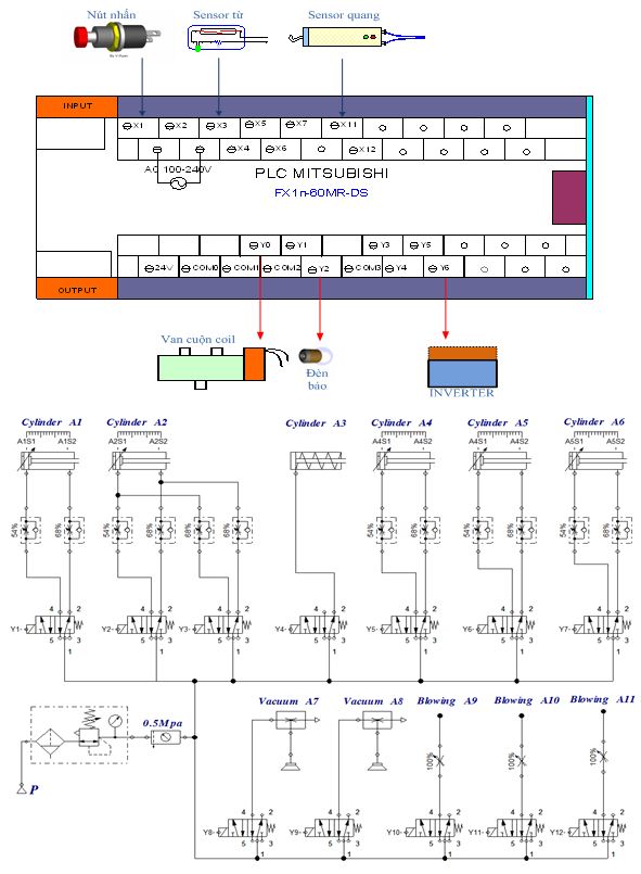 H.4 - Tổng quan mạch điều khiển và mạch điện khí nén của cơ cấu chấp hành.