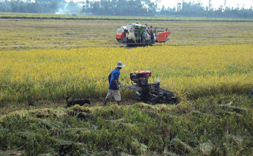 Lúa từ đồng sẽ được gặt lên và chở về nhà máy để tuốt lúa