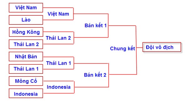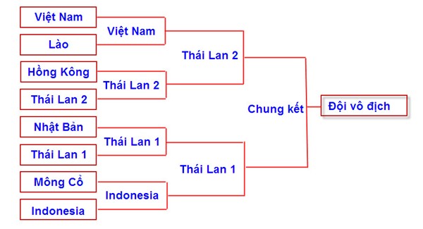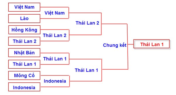 Như vậy Thái Lan 1 và Thái Lan 2 thi đấu chung kết để tìm ra đội Nhất và Nhì. Việt Nam và Indonesia giải 3.