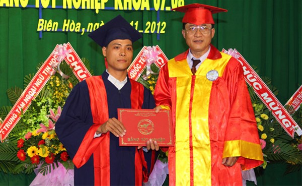 Trao bằng tốt nghiệp và chụp ảnh lưu niệm cùng thầy trưởng khoa