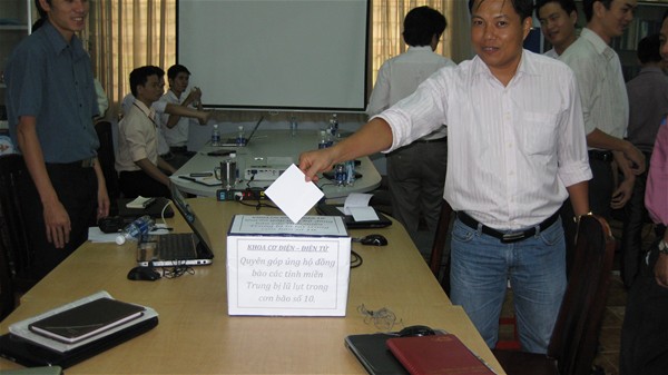 Miền Trung là khúc ruột của đồng bào, là đòn gánh ngang gánh hai đầu đất nước và là nơi oằn lưng chống chọi với thiên tai. Đắng lòng khi “bầu” nhìn “bí” rơi vào cảnh “màn trời chiếu đất”, nhằm chung tay đóng góp và sẻ chia đau thương với đồng bào miền Trung trong cơn bão lũ. Ngày 12/10/2013 Khoa Cơ điện – Điện tử phát động phong trào quyên góp “Một miếng khi đói bằng một gói khi no”.