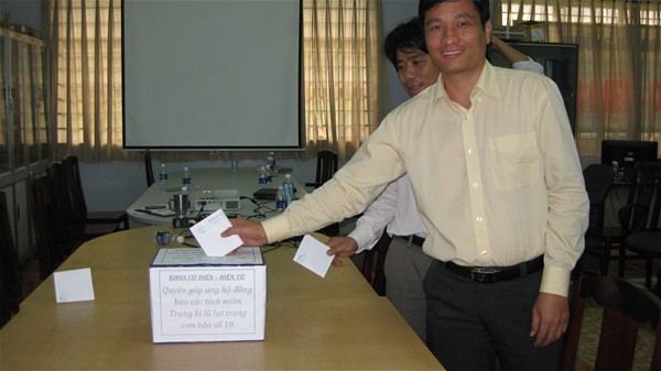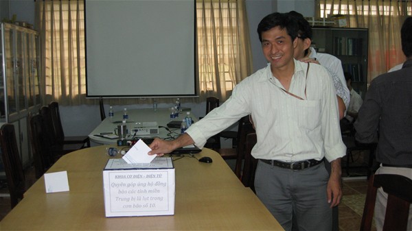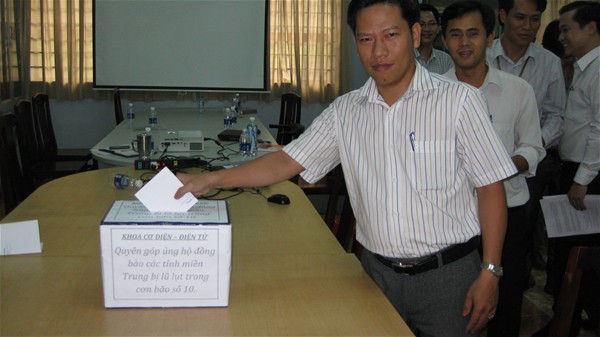 Sau lời kêu gọi của thầy Hiệu trưởng, tập thể sư phạm Khoa Cơ điện – Điện tử đã tích cực hưởng hứng cuộc vận động chung này; tuy không góp được sức người, tập thể Khoa ai cũng hăng hái trích phần lương cơ bản của mình với hi vọng được chung tay cùng đồng bào cả nước nói chung và các đơn vị trong trường Đại học Lạc Hồng nói riêng xoa dịu đi nổi đau thương của đồng bào miền bão lụt.