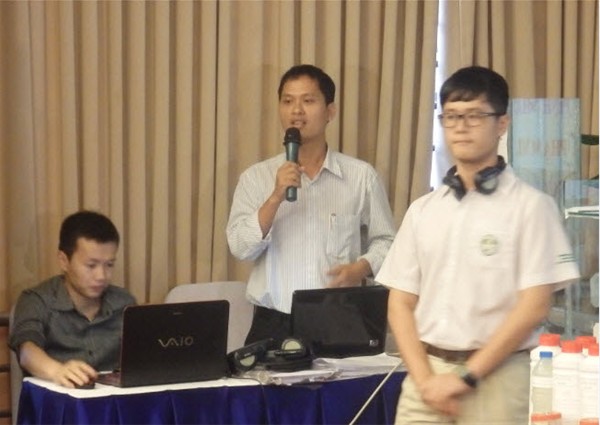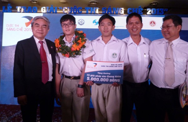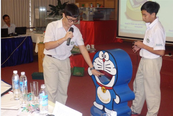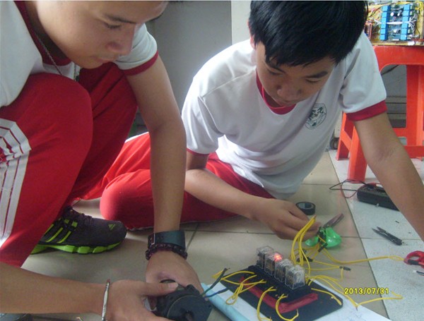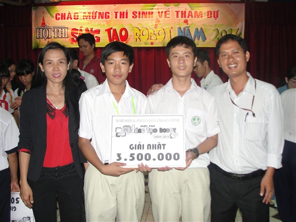 Giảng viên khoa Cơ điện - Điện tử hướng dẫn học sinh trường Song Ngữ Lạc Hồng đạt giải trong cuộc thi sáng chế năm 2013