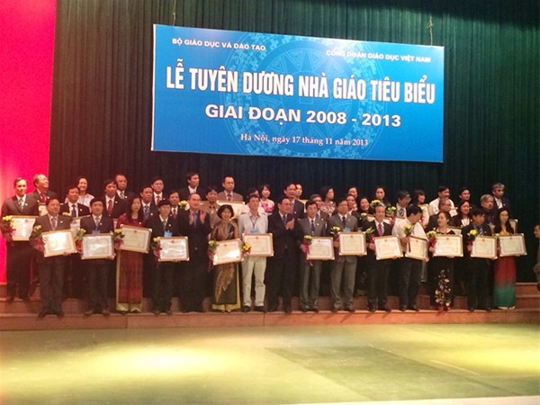 Nhân kỷ niệm 45 năm ngày Bác Hồ ra lời kêu gọi thi đua ái quốc, kỷ niệm 45 năm ngày Bác Hồ gửi bức thư cuối cùng cho ngành Giáo dục và kỷ niệm ngày Nhà giáo việt Nam, Bộ Giáo dục và Đào tạo phối hợp với Công đoàn Giáo dục Việt Nam đã tổ chức Lễ tuyên dương nhà giáo tiêu biểu giai đoạn 2008 -2013.