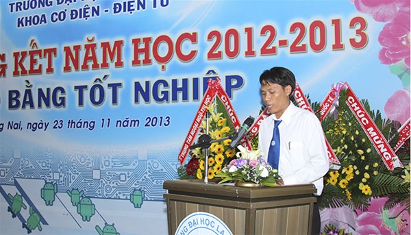 Phát biểu chỉ đạo tại buổi lễ, ThS. Lâm Thành Hiển phó Hiệu trưởng nhà trường đánh giá cao thành tích đạt được của khoa Cơ điện - Điện tử. Với những thành tích đã đạt được trong năm qua, Ban lãnh đạo nhà trường tin tưởng rằng tập thể sư phạm của khoa tiếp tục phát huy tốt những thành tích và thế mạnh của khoa để đạt được nhiều thành công hơn nữa, góp phần tích cực vào việc nâng cao uy tín và thành tích của trường trong mọi lĩnh vực.