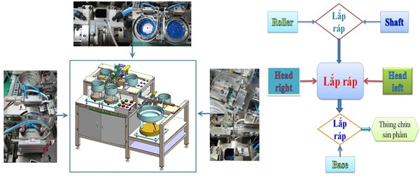 Tổng thể cơ khí gồm các cụm lắp ráp được gia công trên thực tế và trình tự hoạt động của máy lắp ráp HEAD BASE WH-PP