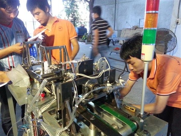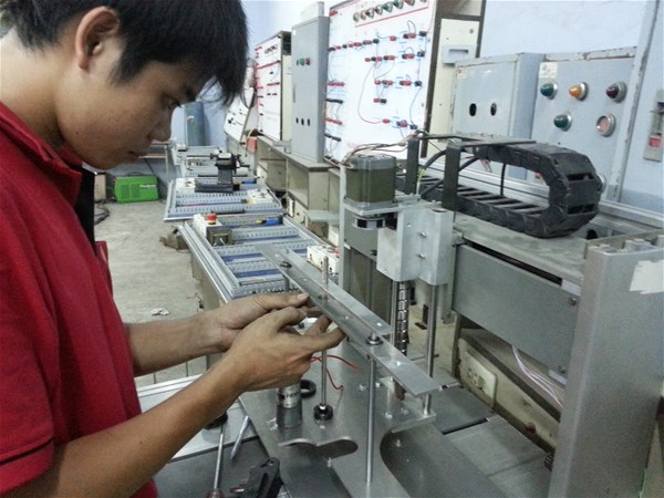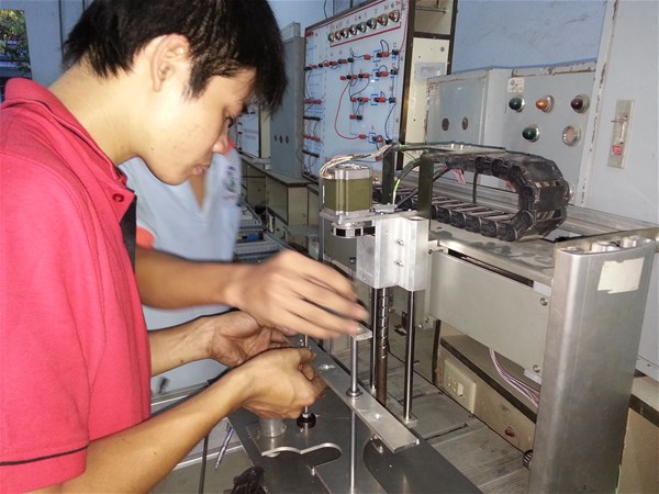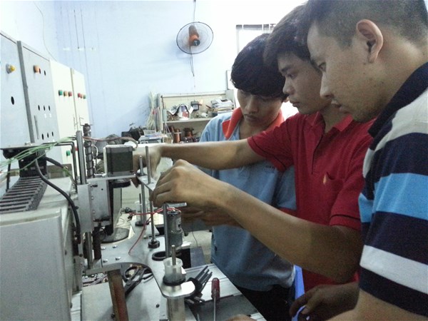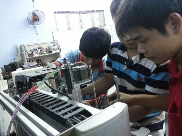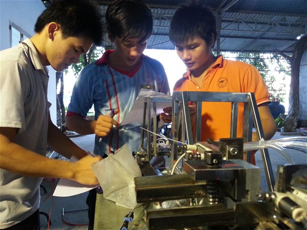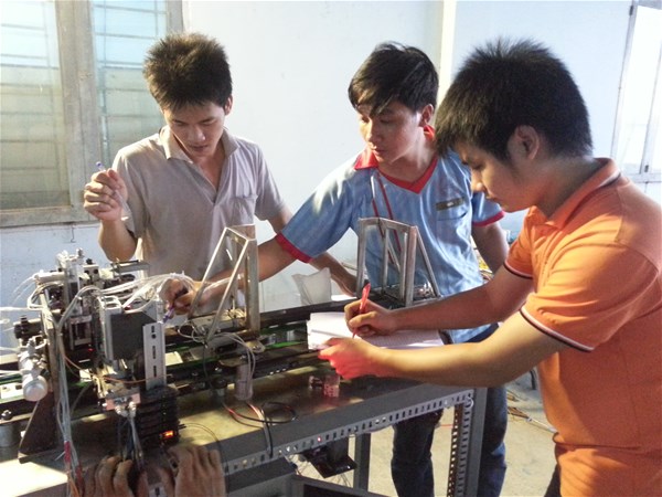 Do thời gian nộp đề tài gần kề nên nhóm sinh viên và giáo viên thực hiện đề tài đang trong công đoạn gấp rút hoàn thành tại khu vực xưởng của khoa Cơ Điện – Điện Tử ở cơ sở 1. Cả nhóm nhiều khi phải làm việc đến 1 hoặc 2 giờ sáng, bất kể thứ 7 và chủ nhật, về đến nhà là mệt nhoài, lăn ra ngủ và sáng hôm sau lại tiếp tục hành trình.