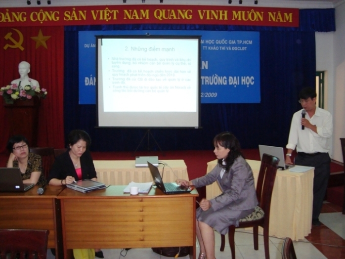 Tham gia lớp tập huấn có TS Phạm Xuân Thanh - Phó Cục Trưởng Cục Kiểm Định Chất Lượng Giáo Dục, TS Nguyễn Đức Nghĩa – Phó Giám Đốc ĐH Quốc Gia TP HCM, TS Vũ Thị Phương Anh – Giám đốc TT Khảo Thí & Kiểm Định Chất Lượng Đào Tạo – ĐH Quốc Gia TP HCM và lãnh đạo, chuyên viên kiểm định chất lượng của các trường ĐH.