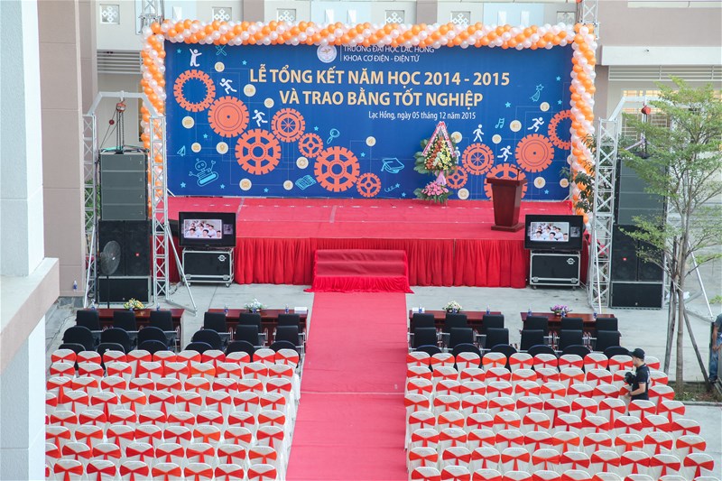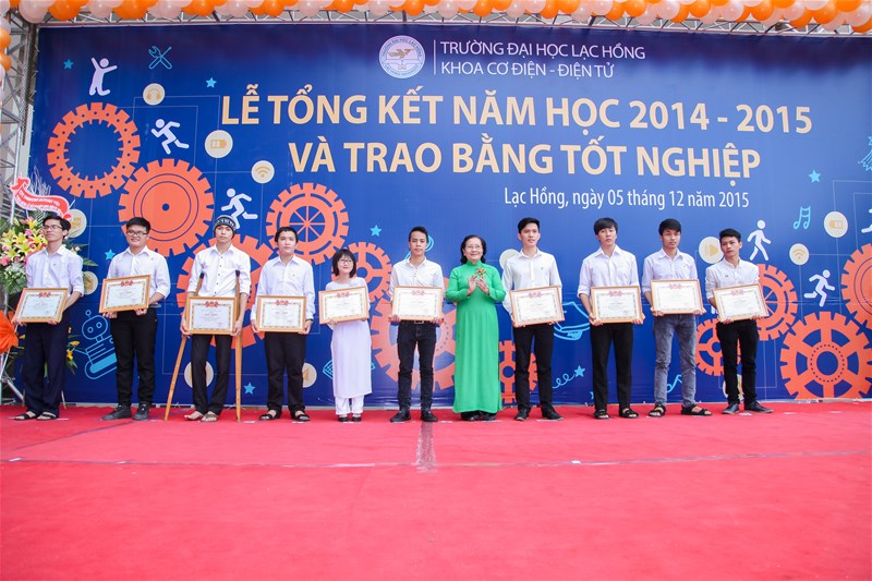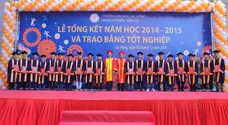 Sáng ngày 05/12/2015, Khoa Cơ điện – Điện tử (CĐ-ĐT) long trọng tổ chức Lễ Tổng kết năm học 2014-2015 - Trao bằng tốt nghiệp tại sân Trung tâm Nghiên cứu Khoa học và Ứng dụng, cơ sở 6, Trường Đại học Lạc Hồng nhằm tổng kết năm học 2014-2015 và trao bằng tốt nghiệp cho 280 tân kỹ sư.
