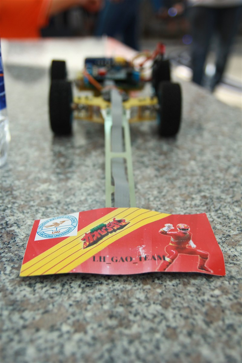 THỂ LỆ THI ĐẤU Đường đua có tổng chiều dài 25m.Cuộc đua được chia làm 2 vòng: * Vòng loại: Mỗi đội phải hoàn thành 2 vòng đua (không tính thời gian). Vòng này các đội được retry 3 lần. Đội nào hoàn thành được vòng này sẽ được vào vòng chung kết. Đội nào không hoàn thành vòng này sau 3 lần retry sẽ bị loại. * Vòng chung kết: Các đội có xe lọt vào vòng này sẽ phải hoàn thành 2 vòng đua tiếp theo. Vòng này tính thời gian để tìm ra nhà vô địch. Mỗi đội cũng sẽ được retry 3 lần (cả 3 lần đều tính thời gian và thành tích tốt nhất trong 3 lượt chạy sẽ được dùng để xác định nhà vô địch) |