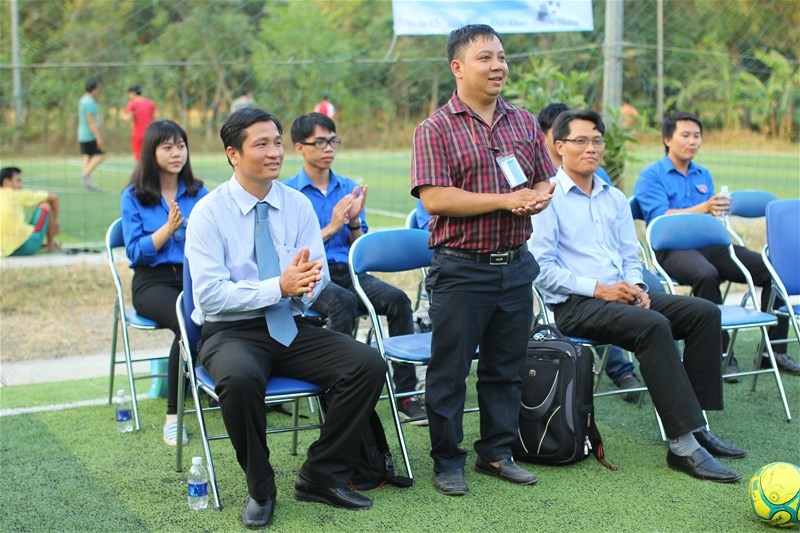Tham dự lễ khai mạc có TS. Nguyễn Vũ Quỳnh – Bí thư Chi bộ 5, Trưởng khoa Cơ điện – Điện tử, ThS. Phạm Văn Toản – Phó Bí thư Chi bộ 5, Phó trưởng Khoa Cơ điện – Điện tử; đ/c Đặng Đại Hùng – UV. BCH Đoàn trường, P. Chủ tịch Hội SV trường; BCH Đoàn – Hội khoa Cơ điện – Điện tử; Đại diện BCH các Đoàn khoa, các thầy cô trong khoa, Ban tổ chức và cùng toàn thể các đội bóng tham dự giải đấu.