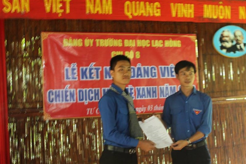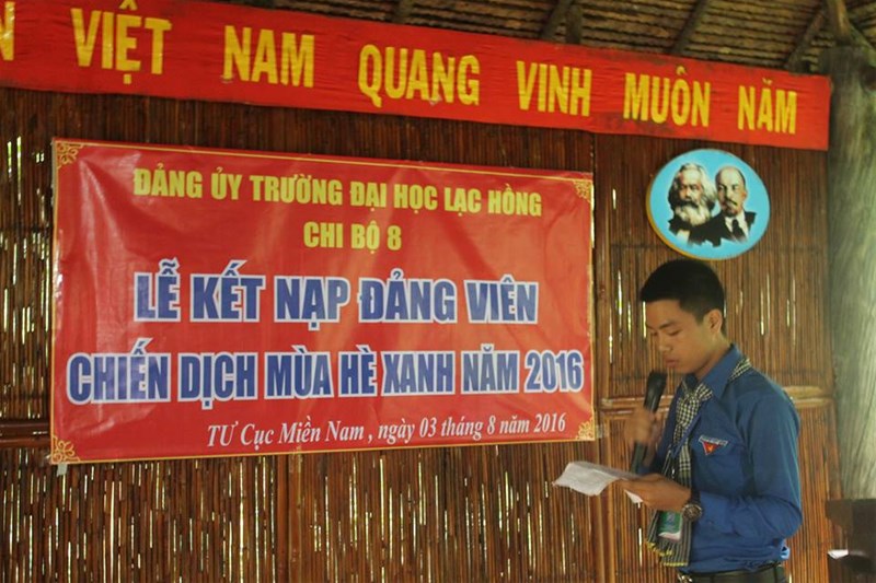 Sinh viên Nguyễn Văn Tuấn, Trường Đại học Lạc Hồng (bên trái) trong ngày được kết nạp Đảng tại Chiến khu Đ