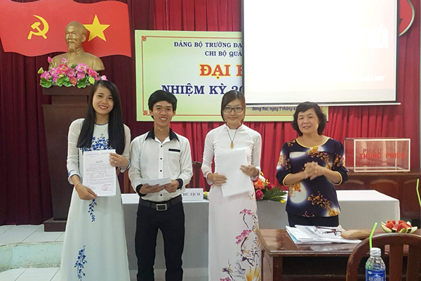 Sinh Viên Đinh Xuân Hảo (thứ hai bên trái) trong ngày được kết nạp Đảng tại Đảng bộ Trường Đại học Đồng Nai