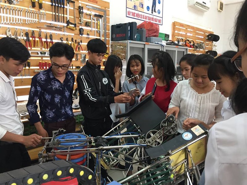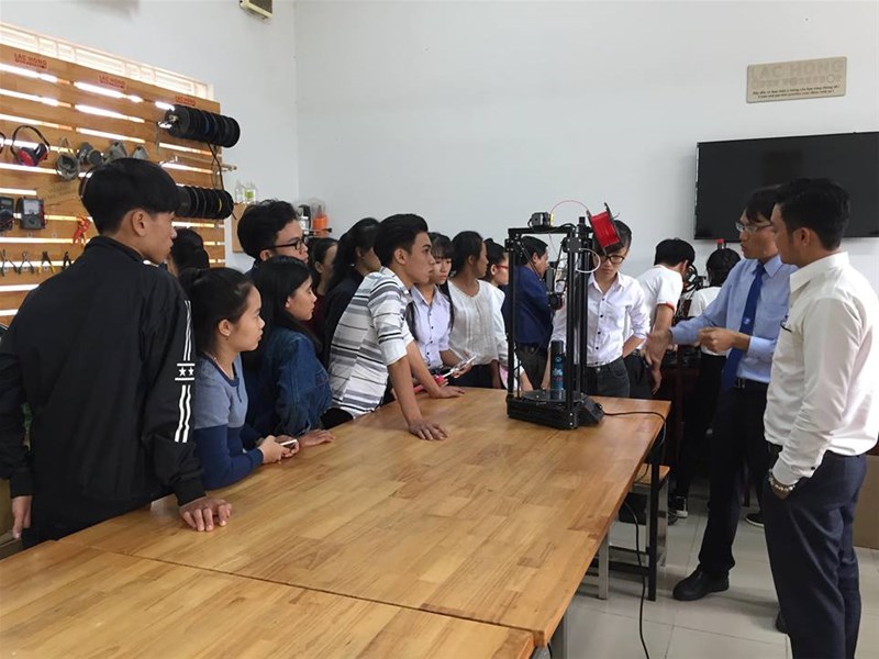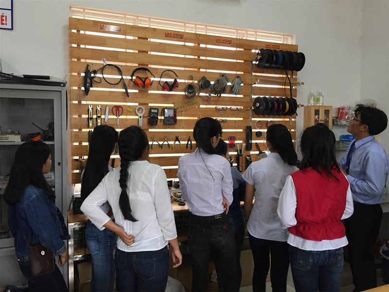 Trong buổi tham quan, ban lãnh đạo khoa Cơ điện - Điện tử cùng với nhân viên của Trường đã giới thiệu đến Lãnh đạo trường THPT Quang Trung và các em học sinh những phòng thí nghiệm của nhà trường cũng như chương trình đào tạo của từng ngành nghề. Thầy Toản cũng cho biết, chương trình đào tạo của nhà trường liên tục thay đổi cho phù hợp với thị hiếu của nhu cầu lao động trong xã hội.
