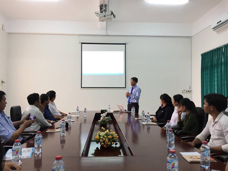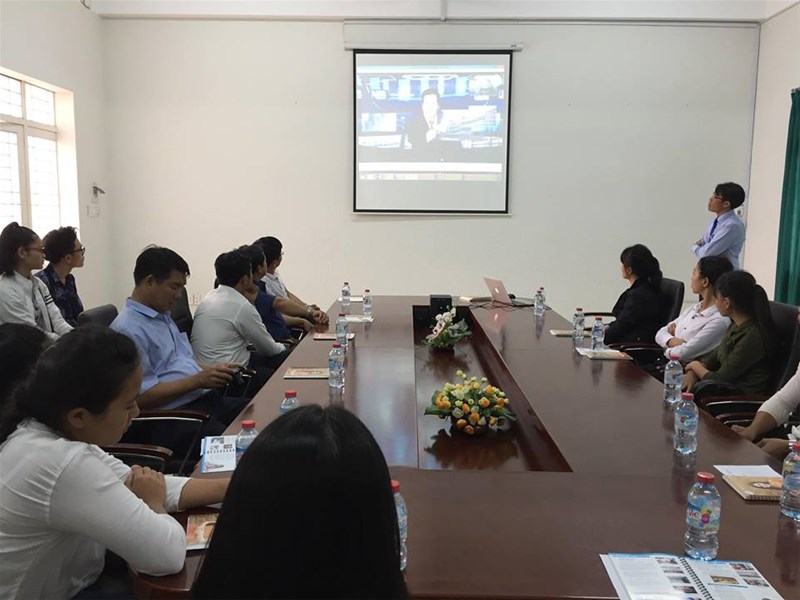 Thầy ThS. Phạm Văn Toản giới thiệu với đoàn tham quan về trường ĐH Lạc Hồng