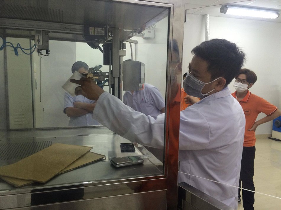 Bộ phận QA của công ty TNHH NAN PAO MATERIALS VIỆT NAM chạy thử máy