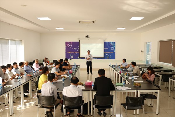 TS. Phạm Văn Toản Trưởng Khoa Cơ Điện – Điện tử Trường Đại học Lạc Hồng đang thảo luận với những ý kiến đóng góp từ phía Doanh Nghiệp