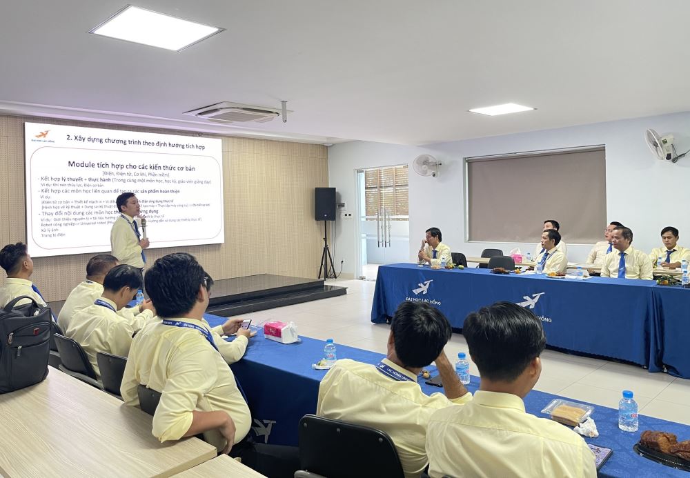 Tại cuộc họp thầy PGS. TS Nguyễn Vũ Quỳnh – Phó Hiệu trưởng góp ý nên tích hợp kiến thức thực tế vào môn học thông quan hoạt động tham quan doanh nghiệp sau khi kết thúc môn học hoặc mời chuyên gia về trao đổi kiến thức liên quan đến môn học giúp sinh viên hiểu rõ hơn về những nội dung đã học trên giảng đường.