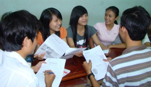 Các bạn chia thành nhiều nhóm nhỏ để thảo luận các chủ đề bằng tiếng anh