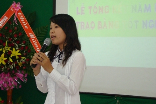 Cô Nguyễn Hoàng Xuân Anh - Phó Trưởng Quản Trị - Kinh Tế Quốc Tế - trao giấy khen cho các sinh viên có thành tích học tập tốt năm học 2008 - 2009