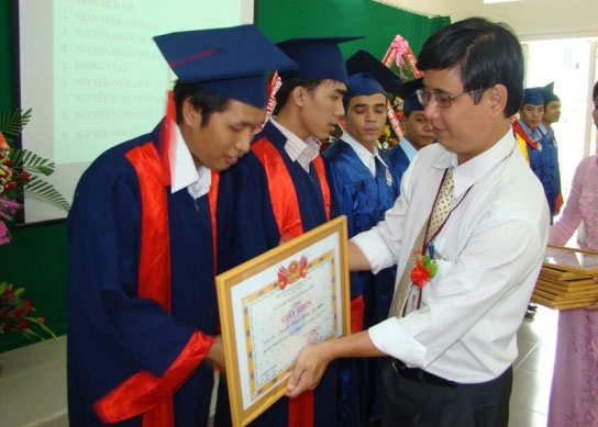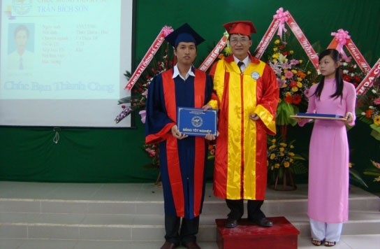 TS. Nguyễn Ngọc Phương trao bằng tốt nghiệp cho các tân kỹ sư, tân kỹ thuật viên chuyên ngành Điện Công Nghiệp và Cơ Điện Tử