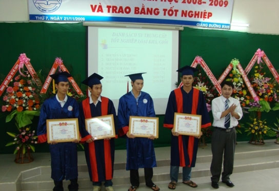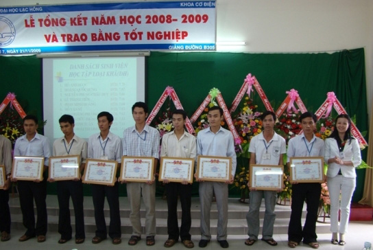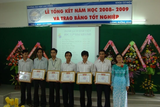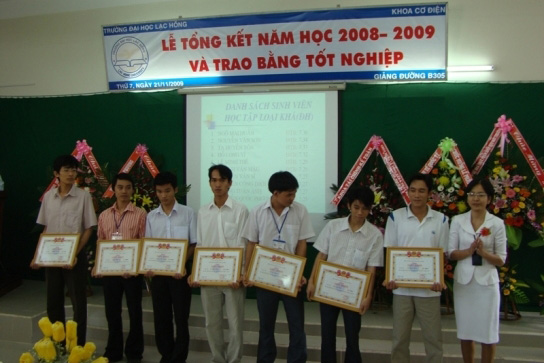 Trong buổi lễ, khoa đã trao phần thưởng, giấy khen cho các sinh viên có thành tích tốt trong năm học 2008 – 2009 và trao bằng tốt nghiệp cho gần 80 tân kỹ sư và tân kỹ thuật viên chuyên ngành Cơ Điện Tử và Điện Công Nghiệp.