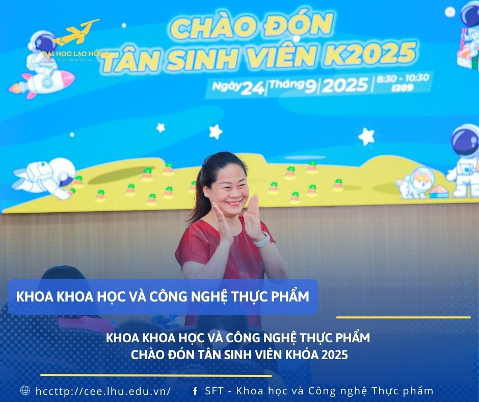 Đến tham dự chương trình có sự hiện diện của Cô TS. Lê Thị Thu Hương – Trưởng khoa Khoa học và Công nghệ Thực phẩm; Cô ThS. Nguyễn Thái Thanh Trúc – Trưởng bộ môn Công nghệ Thực phẩm; Thầy ThS. Bùi Trường Đạt – Trưởng bộ môn Khoa học Thực phẩm, cùng toàn thể quý thầy cô trong khoa và các bạn sinh viên khóa 2025.