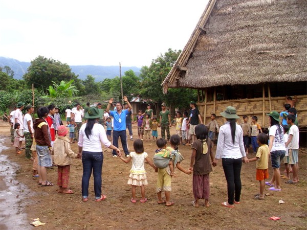 Hình 11: Giao lưu với các em thiếu nhi quanh khu vực nhà rông