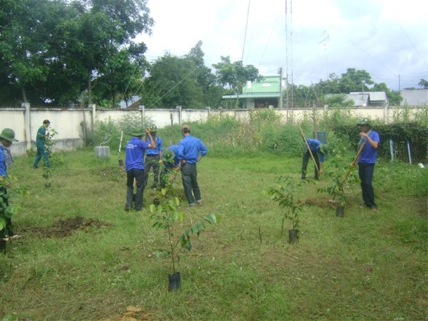 Các bạn đang thực hiện đào lổ và trồng cây.
