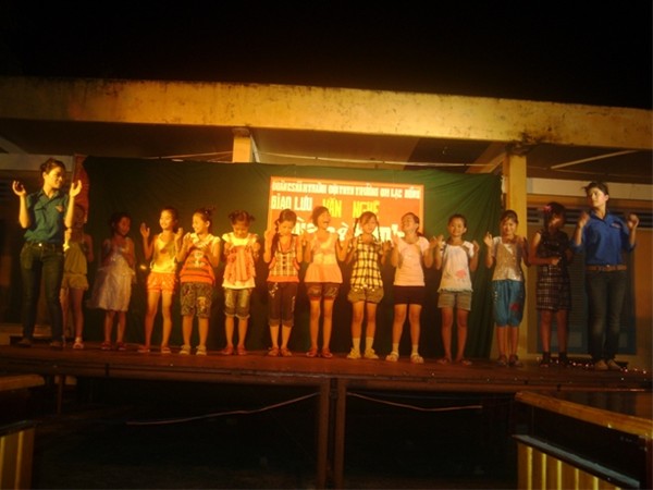Các diễn viên nhí cũng góp vui tiết mục văn nghệ cho đêm giao lưu.