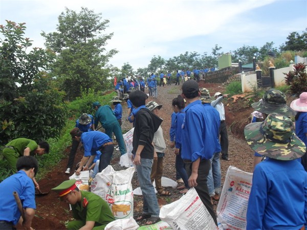 Phối hợp với lực lượng quân đội đóng trên địa bàn làm cầu treo vào khu sản xuất, đắp đập giữ nước, đập chắn dòng nước, đưa nguồn nước về đồng ruộng phục vụ sản xuất, sửa chữa đường giao thông nông thôn. Tham gia cùng với thanh niên địa phương và các Đoàn viên khối cơ quan cấp huyện tổ chức phát quang đường nông thôn, đóng góp ngày công cho các gia đình neo đơn..