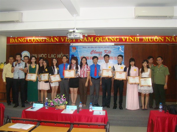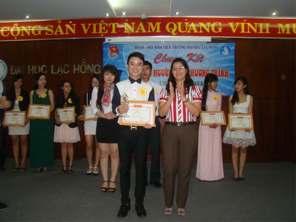 Hình 3: Đ/c Nguyễn Hồ Xuân Hương - Nguyên Bí thư Đoàn trường, trao giải ba của cuộc thi