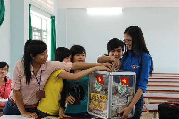 Hình 1: Tổ quyên góp đến từng chi đoàn để vận động