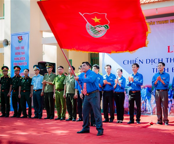 Hình 1: Đồng chí Nguyễn Cao Cường – Phó bí thư tỉnh đoàn Đồng Nai phất cờ lệnh
