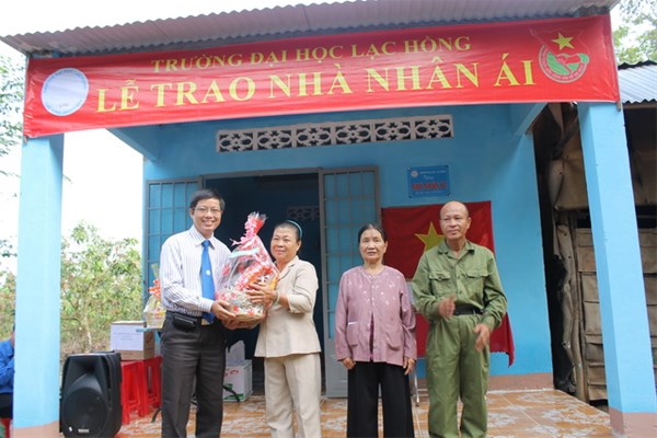 Sáng ngày 03/8/2014, căn nhà nhân ái được chính thức được trao tặng cho ông Chuyến. Tham gia buổi lễ trao tặng nhà, về phía Đảng ủy, Ban giám hiệu nhà trường có Đ/c Nguyễn Trùng Phương – Bí thư Đảng ủy nhà trường; NGND-TS Đỗ Hữu Tài – P. Bí thư Đảng ủy, Hiệu trưởng nhà trường; NGƯT-TS Nguyễn Thị Thu Lan – P. Hiệu trưởng nhà trường; Đ/c Lê Sơn Quang – Bí thư Đoàn trường; các thầy cô là trưởng, phó các phòng, khoa; các Đ/c Bí thư, phó Bí thư, Đảng viên chi bộ 3, chi bộ 4, chi bộ 7, chi bộ 9; lãnh đạo huyện ủy, UBND huyện Vĩnh Cửu; lãnh đạo Đảng ủy, UBND xã Mã Đà; cùng với 30 sinh viên tình nguyện hiện đang công tác Mùa hè xanh tại xã Mã Đà.