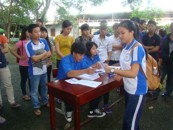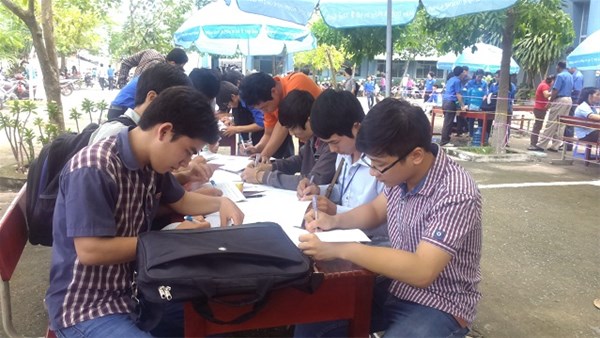 Hình 2- Bộ phận tiếp nhận đăng ký và hướng dẫn (Sinh viên Nguyễn Mạnh Cường - Khoa Kỹ thuật công trình thứ nhất bên trái qua)