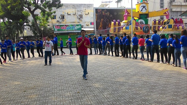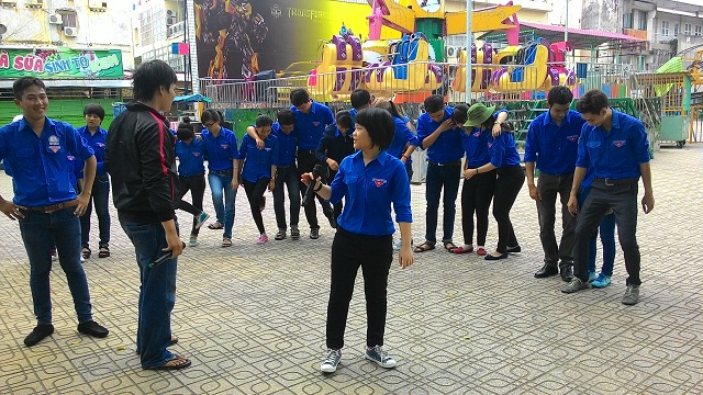 Hình 4- Cán bộ Đoàn - Hội thực hành kỹ năng hoạt náo