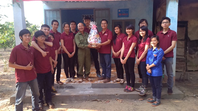 Hình 1- CLB kỹ năng tặng quà cho chú Trần Văn Chuyến - Bộ đội xuất ngũ, được trường ĐH Lạc Hồng trao tặng nhà nhân ái trong chiến dịch TNTN Mùa hè xanh năm 2014 tại xã Mã Đà, huyện Vĩnh Cửu
