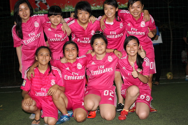 Hình 4: Đội THPT Lê Quý Đôn chia vui với các cầu thủ nữ với chức vô địch ở nội dung nam