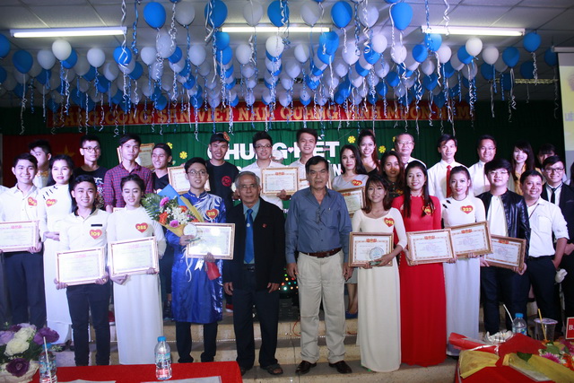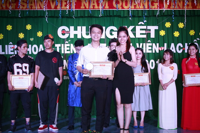 Hình 3: Đ/c Trần Tiến - Chủ tịch Hội Sinh viên trường trao giải thưởng cho các tiết mục Múa, nhảy