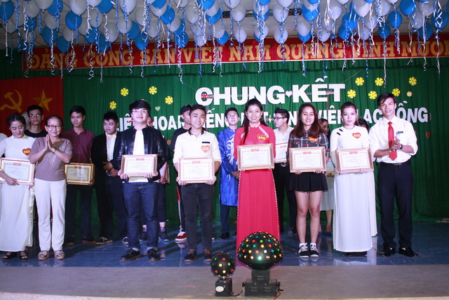 Hình 4: Đ/c Lê Sơn Quang - Bí thư Đoàn trường trao giải thưởng cho các tiết mục Song, tam ca
