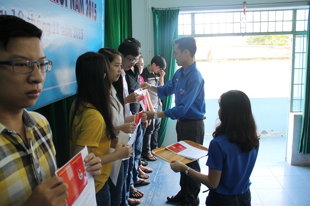 Mở đầu Lễ kết nạp, đồng chí Huỳnh Thúc Hiếu – Đại diện Ban Thường vụ Đoàn trường báo cáo việc xét kết nạp đoàn viên mới, đọc Nghị quyết chuẩn y kết nạp nạp đoàn viên mới và quyết định trao thẻ Đoàn. Kể từ ngày kí nghị quyết, Ban Chấp hành mỗi Chi đoàn có nghĩa vụ bổ sung Đoàn viên mới vào danh sách chi đoàn và triển khai các hoạt động của Đoàn Thanh niên đến các đồng chí đoàn viên.