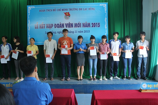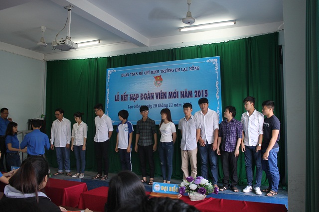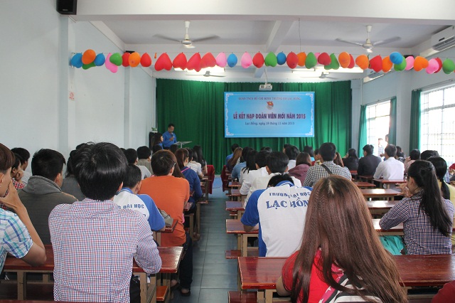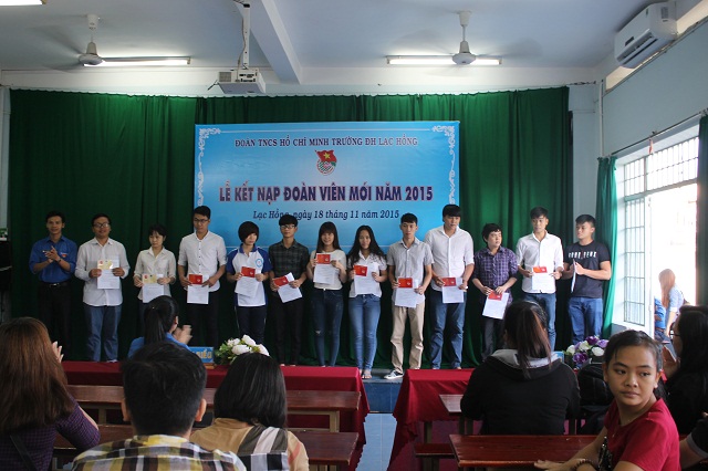 Thực hiện Chương trình năm học; đồng thời nâng cao nhận thức về Đoàn TNCS Hồ Chí Minh, về ý nghĩa vinh dự của người đoàn viên TNCS Hồ Chí Minh. Ban Thường vụ Đoàn trường ĐH Lạc Hồng tiến hành tổ chức Lễ kết nạp Đoàn viên mới năm học 2014 – 2015 cho các bạn sinh viên, thanh niên đã qua Lớp học Cảm tình Đoàn vào lúc 07h00, sáng ngày 18/11/2015 tại phòng E105, cơ sở 3 trường Đại học Lạc Hồng.