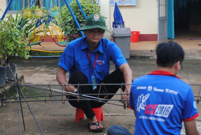 Hình 3: Chiến sỹ Mùa hè xanh (Sinh viên khoa Kỹ thuật Công trình) xây móng cho ngôi nhà