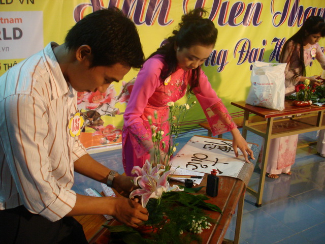 Hình 6: ...Phong phú hơn với những phần thi như vẽ thư pháp, cắm hoa (nam)