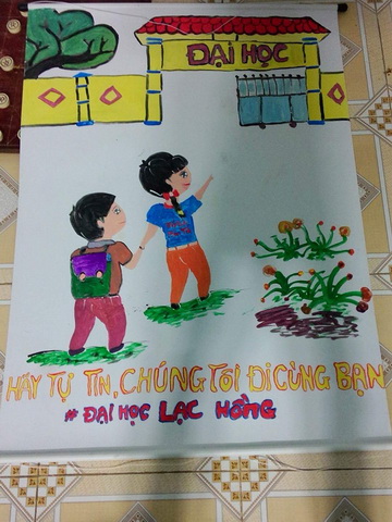 Hình 4: Một bảng khẩu hiệu rất "dễ thương" của các tình nguyện viên ĐH Lạc Hồng