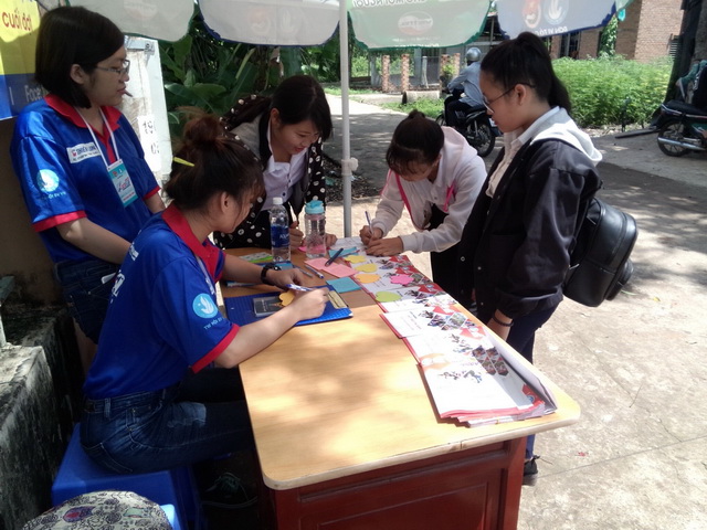 Hình 1: Khẩu hiệu của các chiến sĩ tình nguyện ĐH Lạc Hồng tại các điểm thực hiện chiến dịch