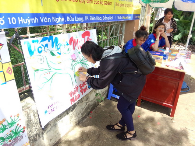 Hình 3: Các em học sinh tại nhiều điểm thi rất thích thú với phong cách làm việc sáng tạo của các chiến sĩ tình nguyện ĐH Lạc Hồng