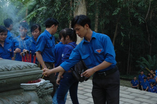 Hình 3: Đoàn viên sinh viên trường chăm sóc mộ Liệt sỹ