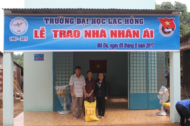 Nằm trong chương trình công tác Hè năm 2017. Sau gần 2 tuần khởi công xây dựng “Ngôi nhà Nhân Ái” trong chiến dịch Mùa hè xanh 2017. Trường Đại học Lạc Hồng, UBND xã Mã Đà, Đội Mùa hè xanh đã tiến hành bàn giao cho gia đình bà Lê Hoàng Dũng ngụ tại Ấp 2, xã Mã Đà, huyện Vĩnh Cửu. Ngôi nhà với nguồn kinh phí được vận động từ thầy, cô, cùng các bạn sinh viên, Chi hội từ thiện trường ĐH Lạc Hồng…Ngôi nhà Nhân Ái có diện tích xây dựng 50mvới tổng kinh phí là 60 triệu đồng.